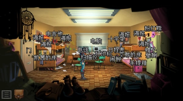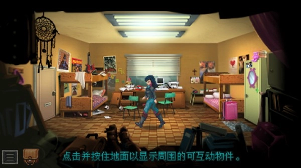 通过点击屏幕来控制角色行走,或是与物品进行交互。