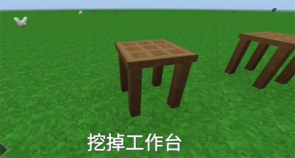 再直接挖掉工作台,只要使用斧头不断的攻击即可。