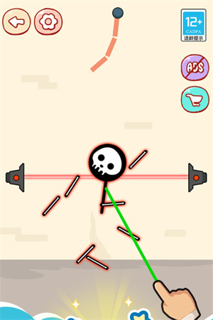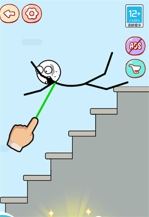 每个关卡里都有火柴人,你只需用手指滑动一下,就能让火柴人和关卡内的物品发生碰撞。