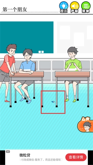 2、观察场景中的蓝色的橡皮擦,拾取掉落的它能成为互动契机,帮助打破当前的交流僵局。