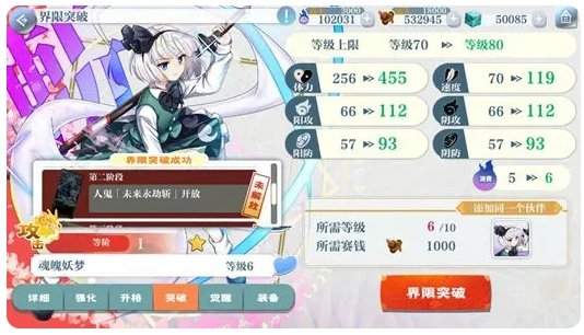 突破可提高强化上限,但不增加任何属性,满突破后大幅强化特性。