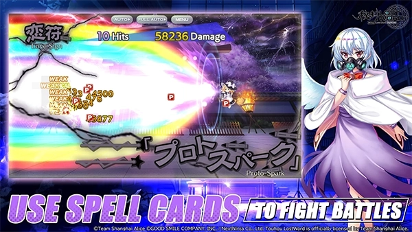同时发动符卡前会触发符卡特效,例如下图咲夜的符卡在发动前会先降低对方的回避,面对高闪怪,先使用这个技能,可以让对方更容易被命中。