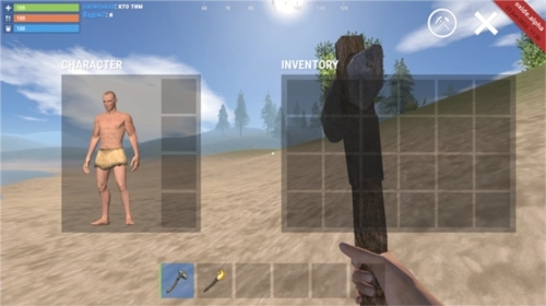 2、点击界面右上角的背包图标可打开背包界面,在此界面中,你能够查看制造配方、可制造物品列表以及当前的穿戴装备信息。若要将背包内的物品放置到屏幕正下方的腰带上,只需用手指拖动对应物品即可完成操作;此外,通过点击腰带上的不同物品,可切换当前激活的物品,方便你随时使用所需道具。
