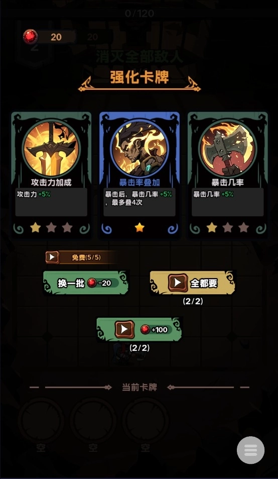 3、挑选技能以增强卡牌的战斗能力,卡牌的颜色是其品质的体现。