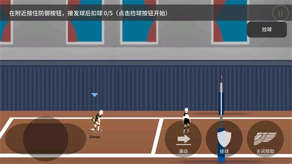 4、在球的周边点击防御按钮就能完成接球操作,但接球之后需要立即进行扣球动作。