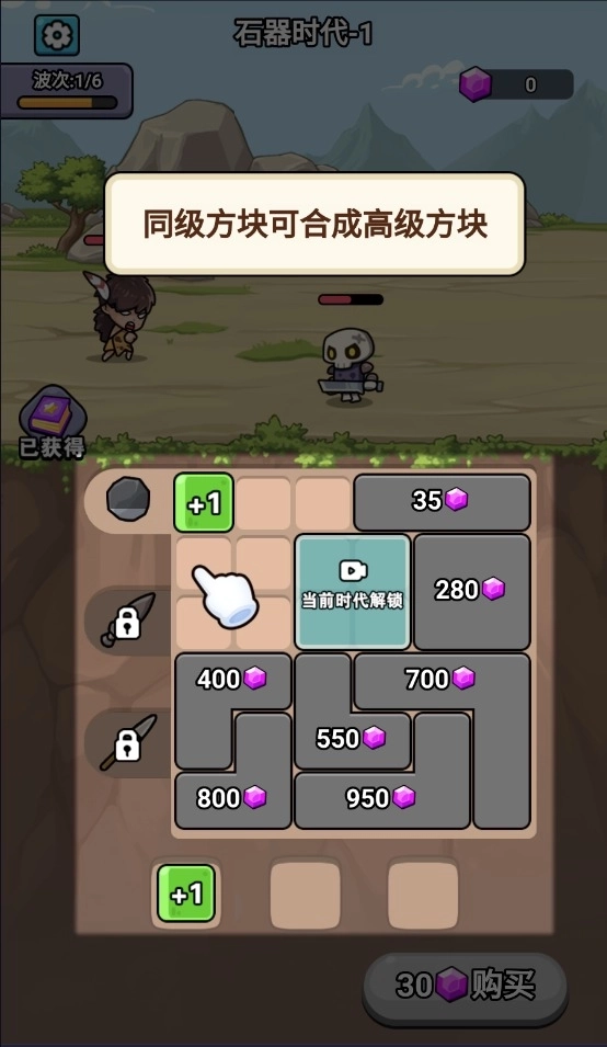 1、战场地面随机生成的武装代码块,可通过三合一操作进化为高阶兵器。