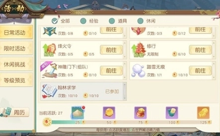 在《神雕侠侣2》里,玩家能借助任务、战斗和活动获取经验值。日常活动中,有个上限次数为10次的专属经验获取活动,它的图标是宝塔样式,旁边配有向上的箭头标识,名字就叫“修行”,设计得十分直观。参与“修行”时,玩家可依据自身等级,在古墓三层里任选一层,再搭配多倍经验丹,开启自动巡逻与战斗功能后,无需手动操作,经验便会源源不断地增加。接下来,就为大家详细介绍《神雕侠侣2》的修行活动,也就是古墓修行的具体玩法。