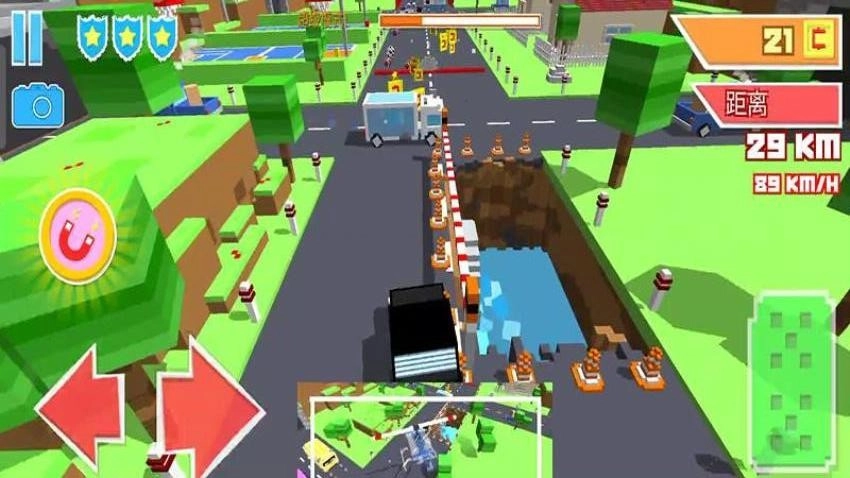 1、灵活规避障碍物以避免碰撞,全力提升速度快速奔赴指定地点,在被警方追上之前抵达目的地即可完成最终挑战。
