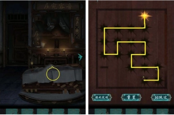 12、取得【天字活块】,将其放入窗边凹槽,根据石碑上的回文诗句线索,调整机关为“天连水尾水连天”,成功后可打开窗户并获得【灯笼】。
