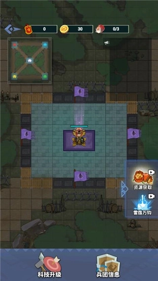 3、游戏开始先积累500金币,收集资源后优先升级资源模块里的强化人口提升功能;前期保持6个兵力,这样能实现人数上的压制优势。