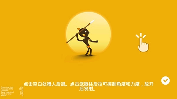 4、游戏的玩法十分简单直接,点击空白区域猎人会后退,点击武器向后拉动可以调整角度和力度,松开后即可发射。