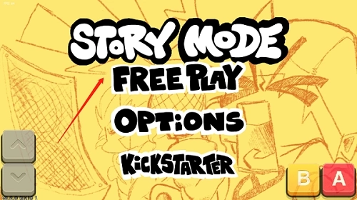 1、通过点击左侧的上下按键来选定故事模式,再点击右侧的A键完成确认操作。