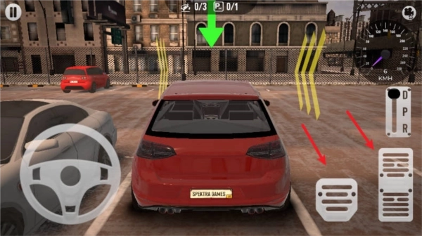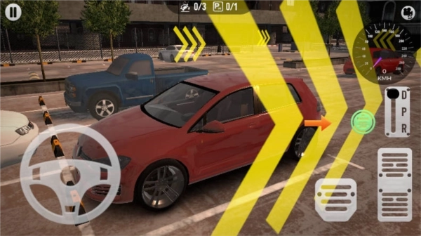2、加速/刹车:加速与刹车的按钮分别位于屏幕下方。小心控制加速,避免过快冲过目标停车位。刹车操作尤其重要,需要在接近停车位时及时减速,避免碰撞。