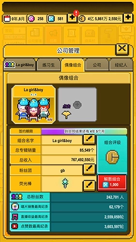3.发行专辑:可以吸引粉丝,提升能力值,而且如果专辑表现出色,年底还能获得奖项。关键是风格匹配就行,要是风格特别合适,会提示你主题和风格都很棒。这里有一些固定的搭配组合,像告白搭配漂亮、青春期搭配酷这类。