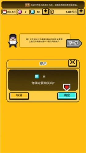 6、社交平台是偶像和粉丝互动沟通的关键渠道!现在就为偶像开通专属社交账号吧,点击下方的确认按钮即可完成操作。