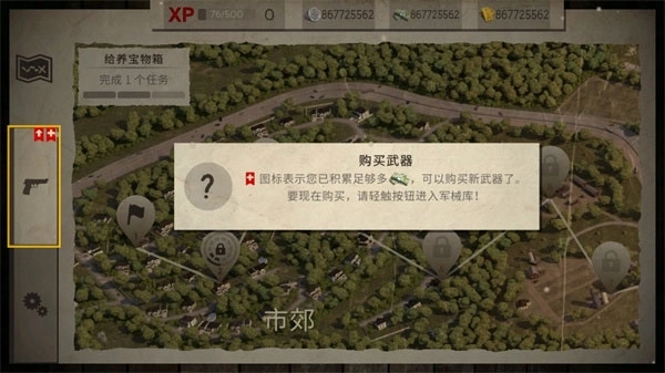 2、此处需购买武器,轻点“购买”按钮,即可打开“购买”菜单;
