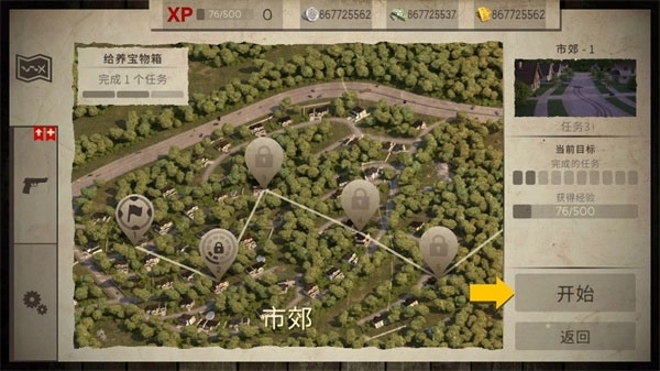 5、接着选择关卡,在此需要完成一项任务——给养宝物箱,之后点击开始。