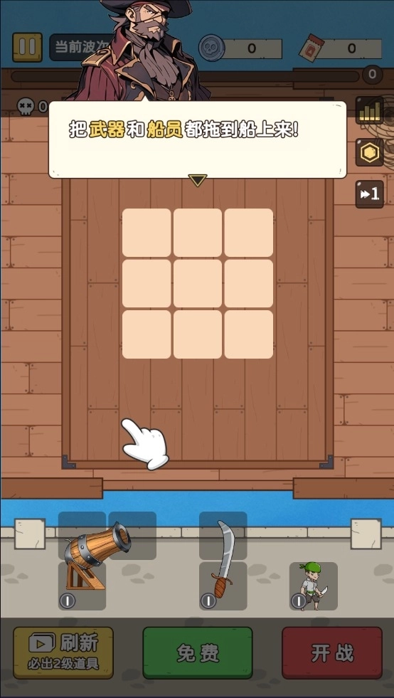 2、根据引导把武器和船员都拖到船上的格子中去。