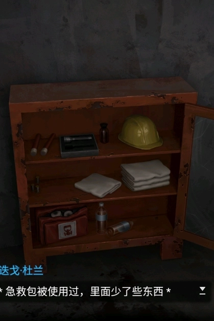 进入仓库后点击应急工具箱,发现毛巾和急救包少了