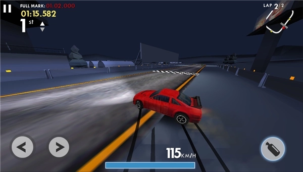 3、漂移和氮气加速等细节操作,玩家需要自己选择刹车时机与过弯技巧以应对复杂赛道。