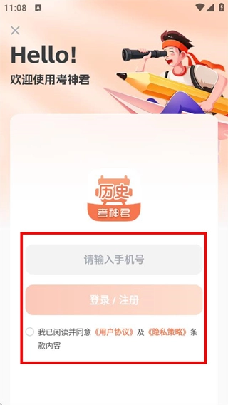 3、在登录页面,填写手机号并勾选相关协议后,点击登录注册按钮,即可进入注册页面。