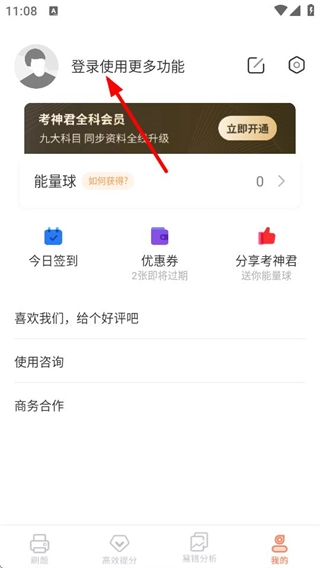 2、进入个人页面后,点击“登录使用更多功能”区域,即可跳转至登录页面。