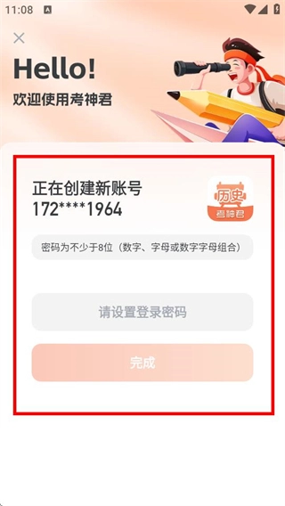 4、在注册页面,设置好登录密码后点击“完成”按钮,就能完成账号注册流程。