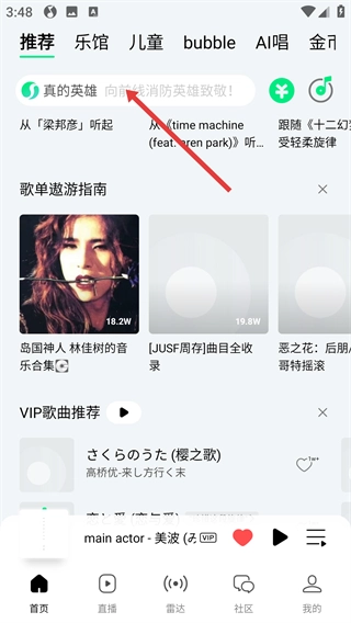 在【QQ音乐】里,我们可以点击顶部的【搜索框】,这样就能进入搜索页面啦。