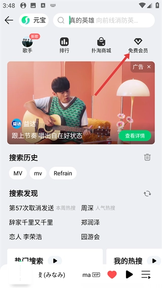 进入搜索页面后,我们可以点击【免费会员】按钮,进入对应的领取页面。