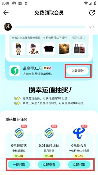 在免费领取会员的页面,我们只需点击【立即领取】按钮,就能成功获取会员权益了。