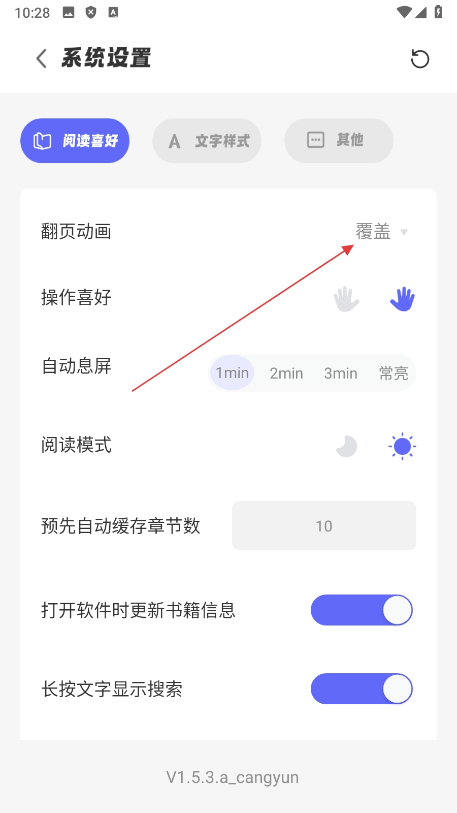 苍云阅读怎么设置翻页动画模式