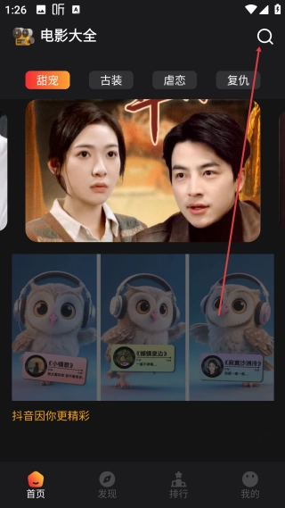 1、进入电影大全页,点击【右上角搜索图标】,进入搜索的功能界面。