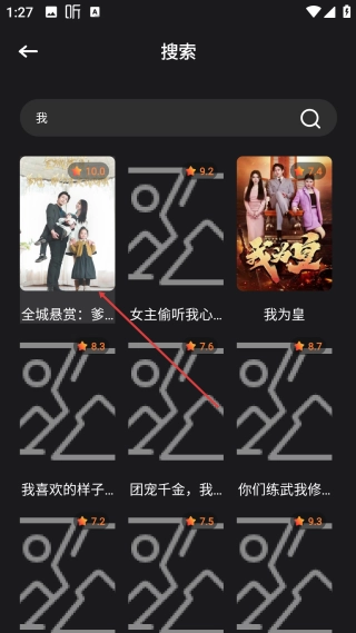3、在搜索结果页,选中【目标影视内容】,进入该影视的详情查看页面。