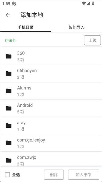 2、点击本地导入,系统便会自动扫描手机中存储的TXT、EPUB等格式的小说文件。