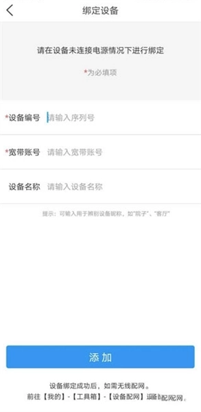 (3)在输入“宽带账号”与“设备名称”之后,点击“添加”按钮,就能完成绑定操作。