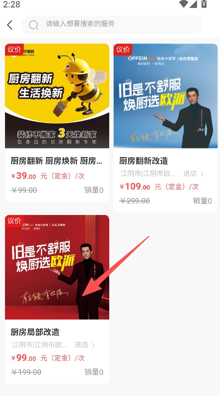 2、服务展示含价格定金销量信息,内容透明直观,贴合用户了解服务细节及性价比的需求。