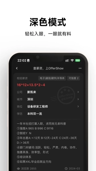 offershow薪资查询作为一款专注于求职服务的移动应用,它不仅仅是一个工具,更是求职路上的良师益友。在这里,你可以获得最真实的薪资情报,找到最适合自己的工作机会,享受个性化的求职服务。加入我们,一起迈向成功的职业生涯。
