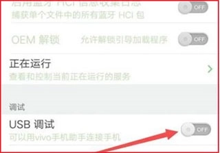 6、打开后,找到下方的USB调试选项,将其右侧的开关打开。
