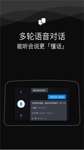 2、用户可在各页面通过语音指令“小度你好”或对应按钮唤醒语音控制功能,进而使用模块切换、目的地搜索、音乐播放控制、拨打电话等功能。