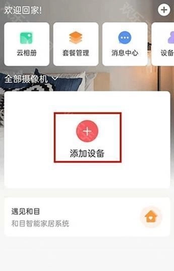 1、打开移动爱家,点击添加设备。