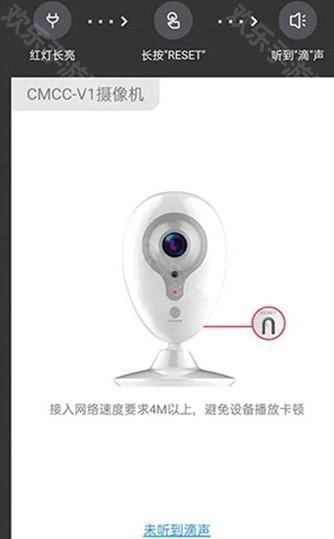 3、在重置摄像机页面,点击听到滴声。