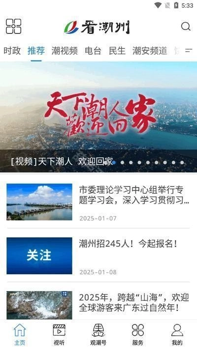 看潮州是一款非常好用的新闻软件,可以让大家自由获取想要的新闻资讯,还可以实时了解到新闻报道。不管是什么时候都能够轻松浏览查看喜欢的新闻,了解到方方面面的热点资讯。为用户带来更多的新闻资讯,方便用户进行阅读观看,包含了视频、文章、图片等等。
