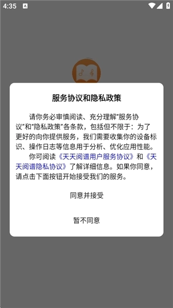 1、来将天天阅谱安装到手机上。