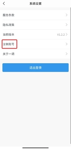 2、在系统设置页面中点击注销账号按钮!