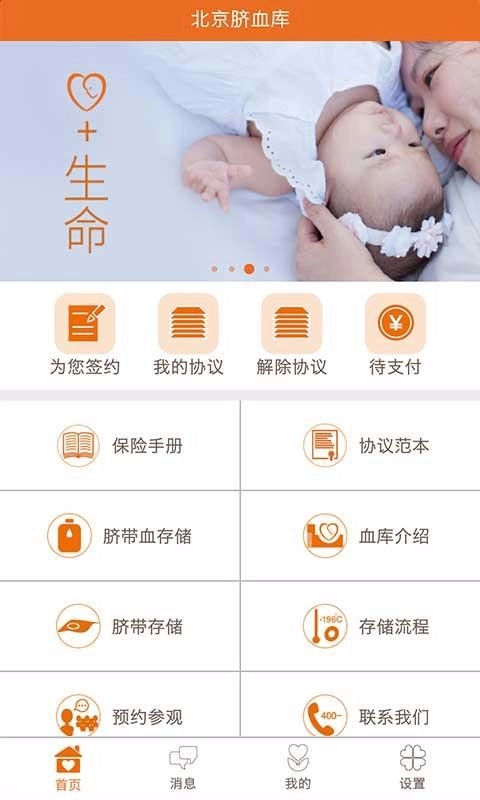 1、打开北京脐血库平台,在首页能够看到签约、我的协议、付款等相关功能入口。