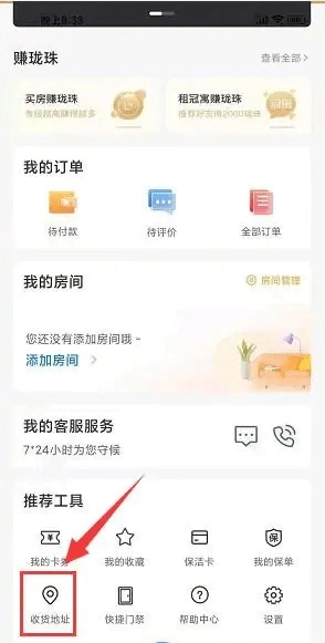 2、在我的界面,单击收货地址选项