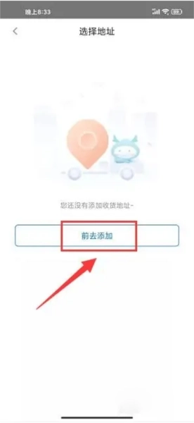 3、在选择地址界面,单击前去添加选项