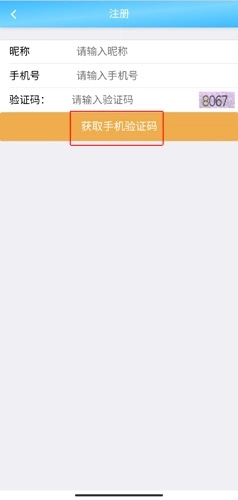 2、在注册页面填写完整之后,点击获取手机验证码按钮;