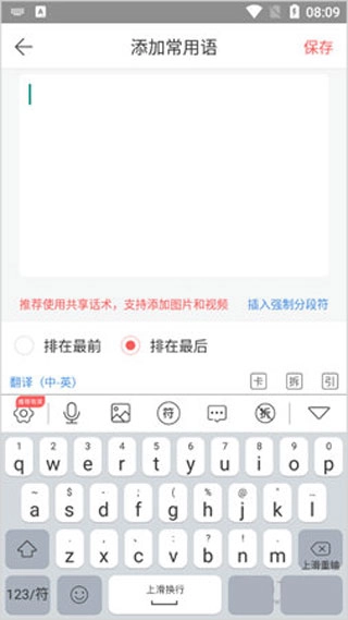 进入分类页面后,你就能添加自己的常用语了。这些常用语既可以直接导出使用,也能直接从共享话术中导入进来。