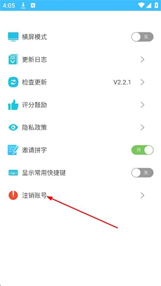3、在设置页面,点击注销账号,进入注销协议页面。